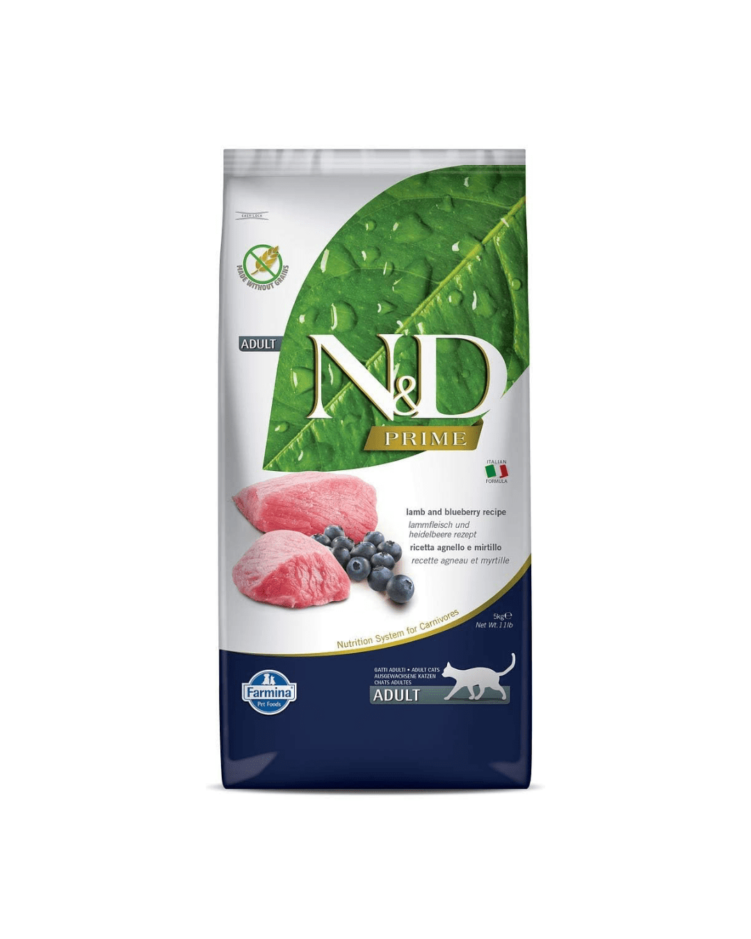 N&D Cat Food | 5 kg | Prime Adult Lamb and Blueberry Recipe Cat Food
