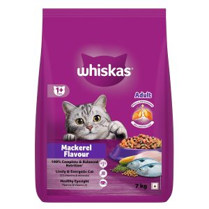 Whiskas Adult (1+ Years) Dry Cat Food | Mackerel Flavour | 7 kg | Contains 41 Essential Nutrients | Complete & Balanced Nutrition for Adult Cats