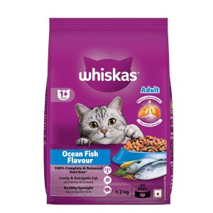 Whiskas Adult (1+ Years) Dry Cat Food | Ocean Fish Flavour |1.2 kg | Contains 41 Essential Nutrients | Complete & Balanced Nutrition for Adult Cats