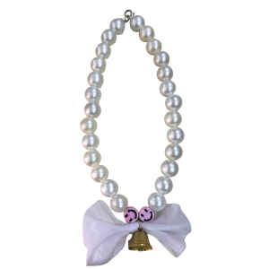 Cat Pearl Collar | Pet Collar | White Bow Design With Bell & Smiley Charm