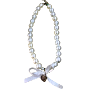 Cat Pearl Collar | Pet Collar | White Bow Design