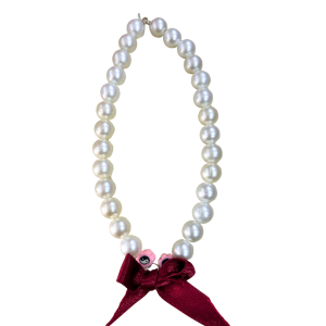 Cat Pearl Collar | Pet Collar | Wine Red Bow Design