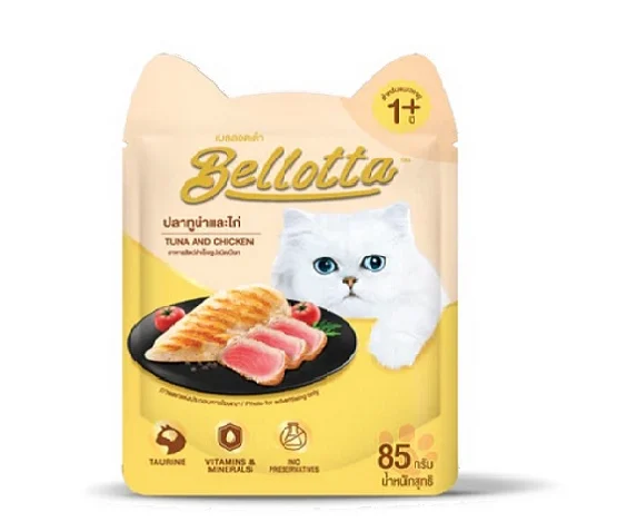 Bellotta Tuna with Chicken Wet Food Adult Cat Food, 85 Gms is made from high-quality tuna the Bellotta Tuna Light Meat In Jelly Hair Ball Control Tray provides vital protein, amino acids to support the general well-being of your cat.