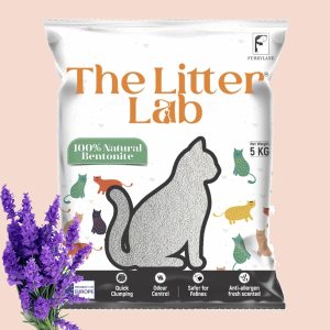The Litter Lab | Cat Litter | 100% Natural Bentonite | Lavender Flavour | Odour Control, Safer for Felines | Anti-allergen Fresh Scented | Quick Clumping | 5 KG