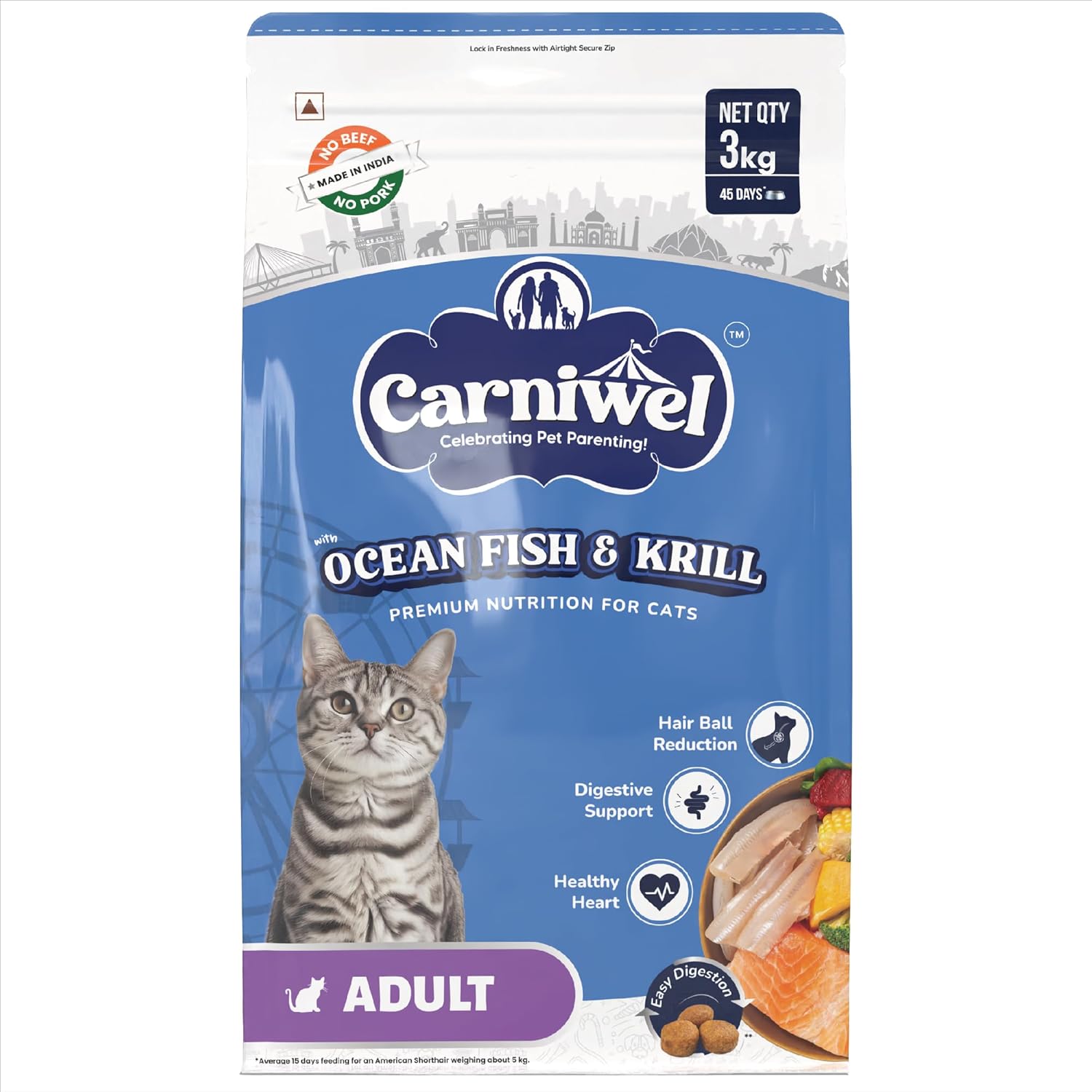 Carniwel Ocean Fish & Antarctic Krill Adult Dry Cat Food | 3 kg | Fresh & Natural Ingredients | Highly Palatable | Supports Healthy Skin & Glossy Coat | Premium Nutrition for Cats