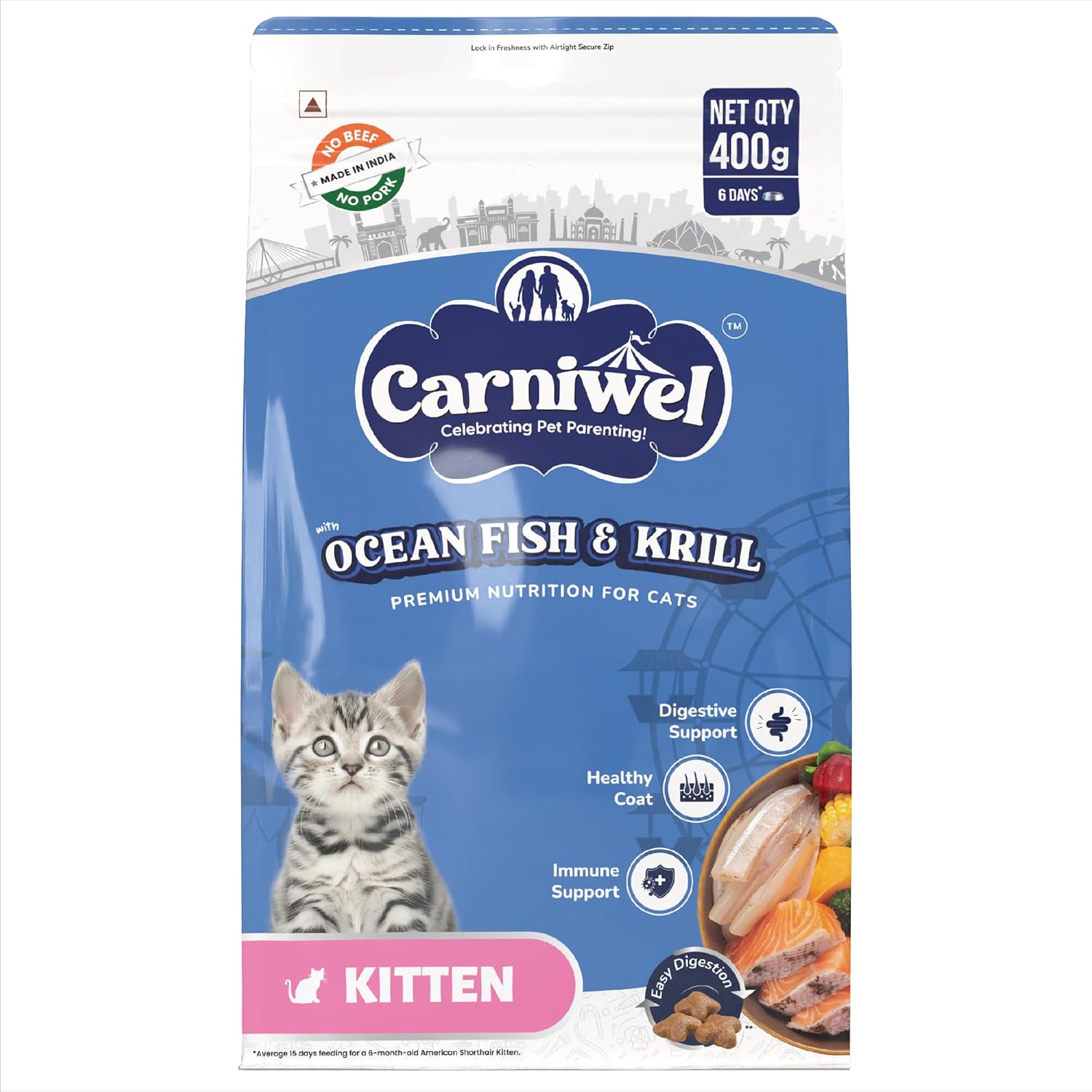 Carniwel Ocean Fish & Krill Kitten Dry Cat Food | 400 g | Fresh & Natural Ingredients | Highly Palatable | Supports Healthy Skin & Glossy Coat | Premium Nutrition
