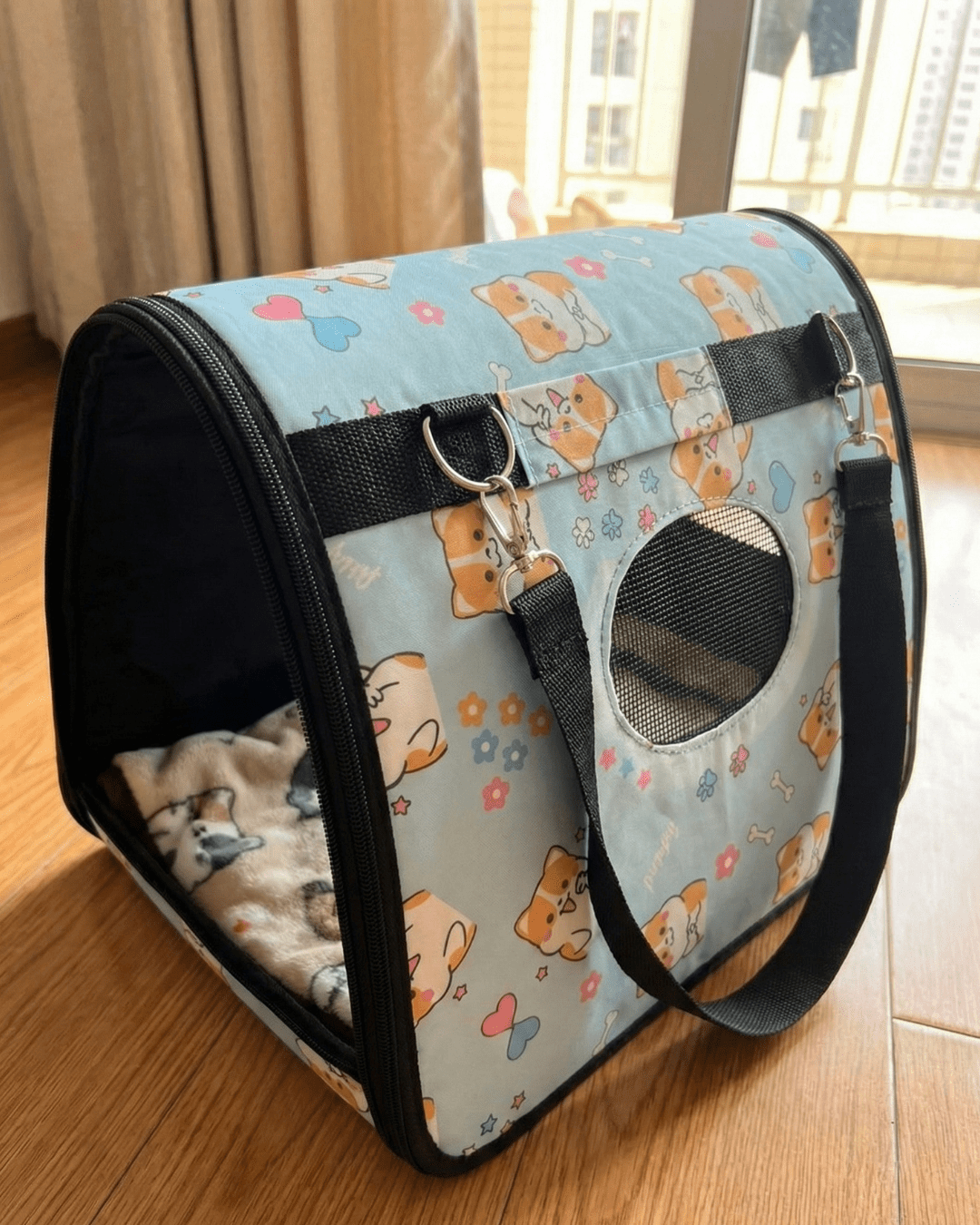 Cat Carrier Bag | Blue Printed Design