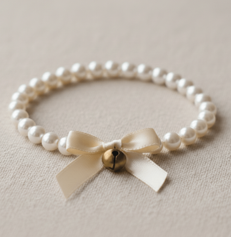 Cat Pearl Collar | Pet Collar | White Bow Design