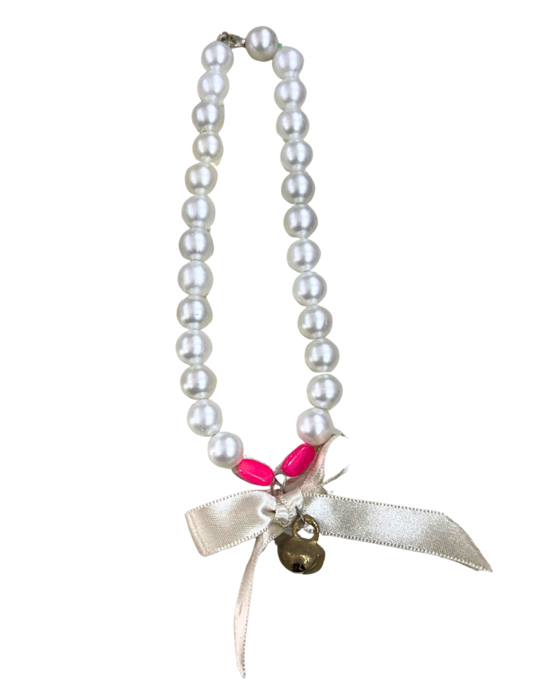 Cat Pearl Collar | Pet Collar | White Bow Design
