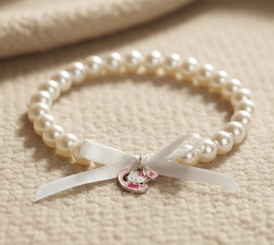Cat Pearl Collar | Pet Collar | White Bow Kitty Design