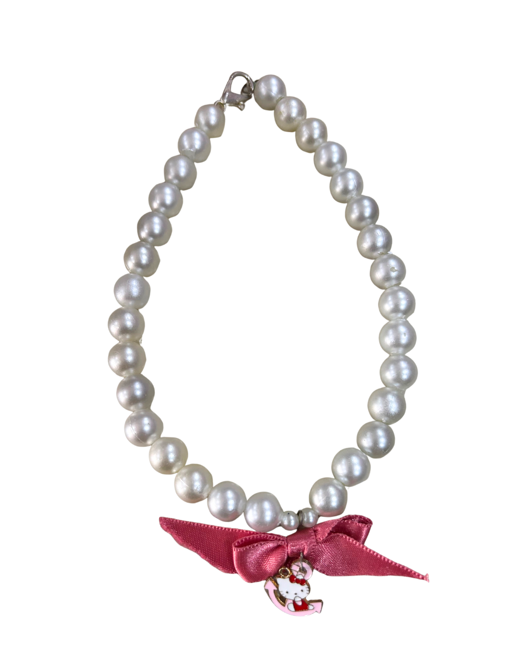 Cat Pearl Collar | Pet Collar | White Bow Design