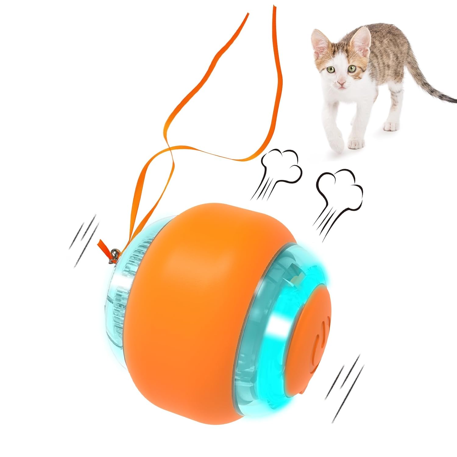 Cat Toys Interactive for Indoor Cats | Auto Moving Cat Ball Toy with Led Lights, Smart Cats Toy Motion Activated | Kitten Toys, USB Rechargeable, Auto On/Off