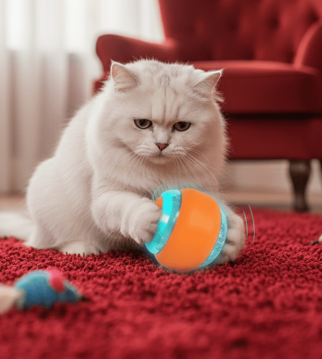 - Smart interactive cat toy: 4.5cm rolling ball cat toy. Auto-moving ball attracts cats to chase and pounce the ball, Keeps them entertained for a long time and stays exercised, and healthy.