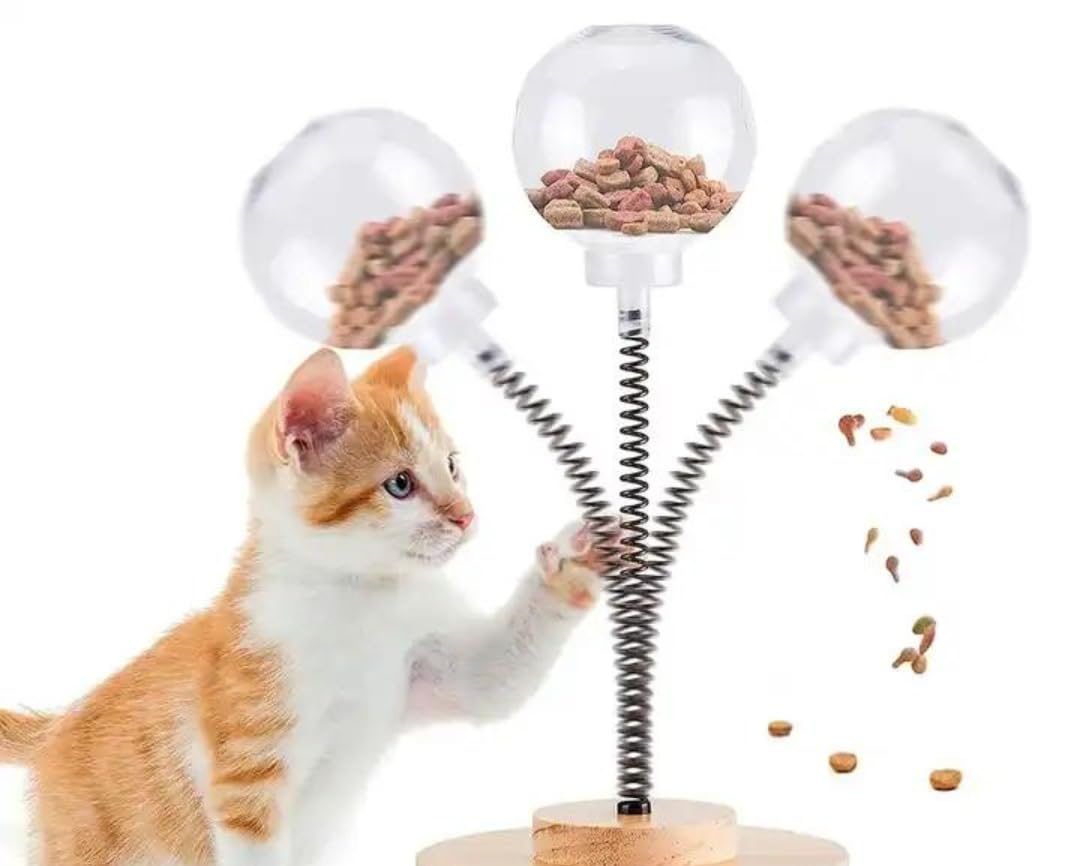 Cat Treat Dispenser | Interactive Brain Stimulating Feeder With Wooden Track Turntable | Small quantity