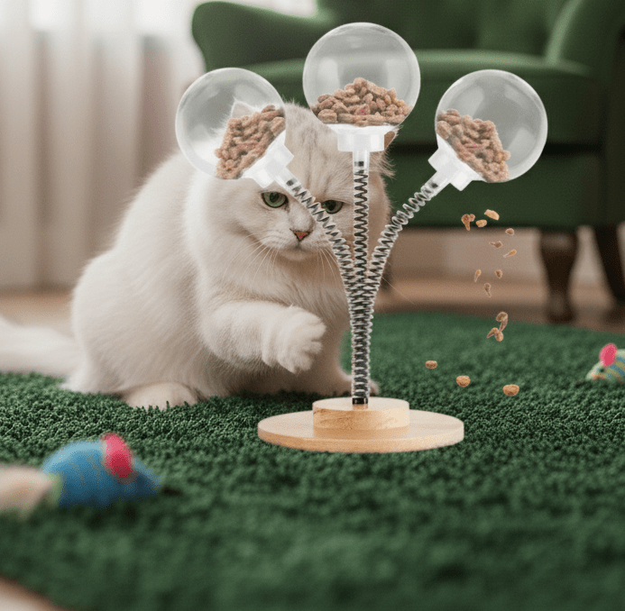 / Cat Treat Dispenser | Interactive Brain Stimulating Feeder With Wooden Track Tur...