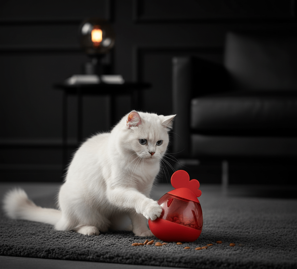 - Greatly entertaining wobbling cat toy with inner food compartment