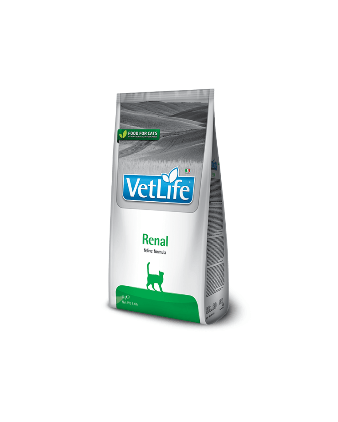 Chronic or temporary renal insufficiency; coadjuvant for the treatment of congestive cardiac insufficiency. Farmina Vet Life Renal is a complete dietetic food for cats formulated to support the renal function in case of chronic or temporary renal insufficiency. This dietetic food contains low phosphorus concentrations and reduced protein content but of high quality.