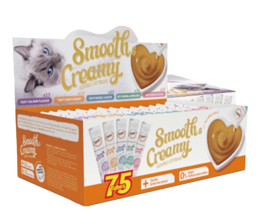 Gnawlers Smooth Creamy Treat for Cats with Tasty Crab | Salmon | Liver | Mussel | Bonito Single Tubes Jar | 75 Tubes