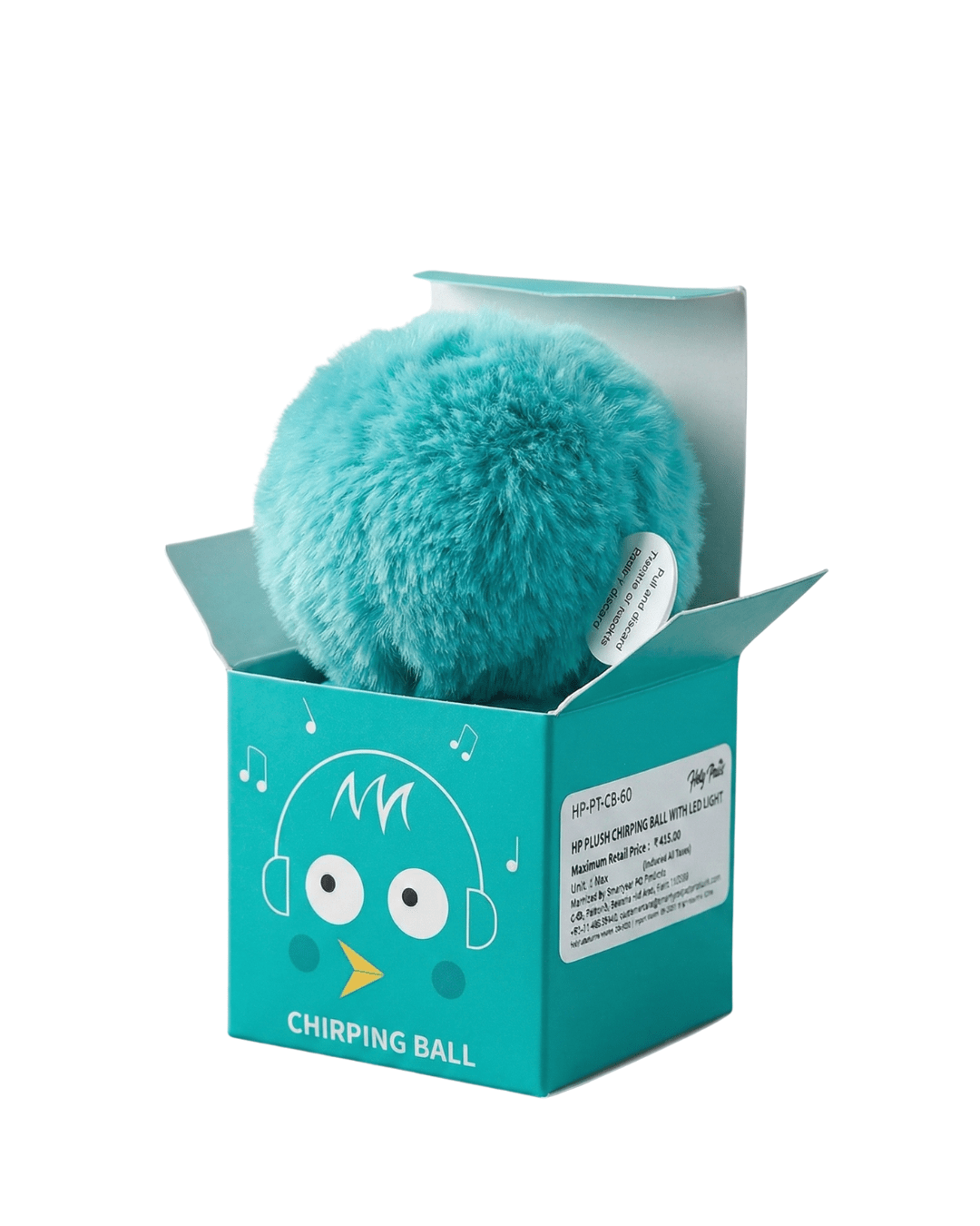 Holy Paws Plush Chirping Ball With LED Light Toy | Teal Colour