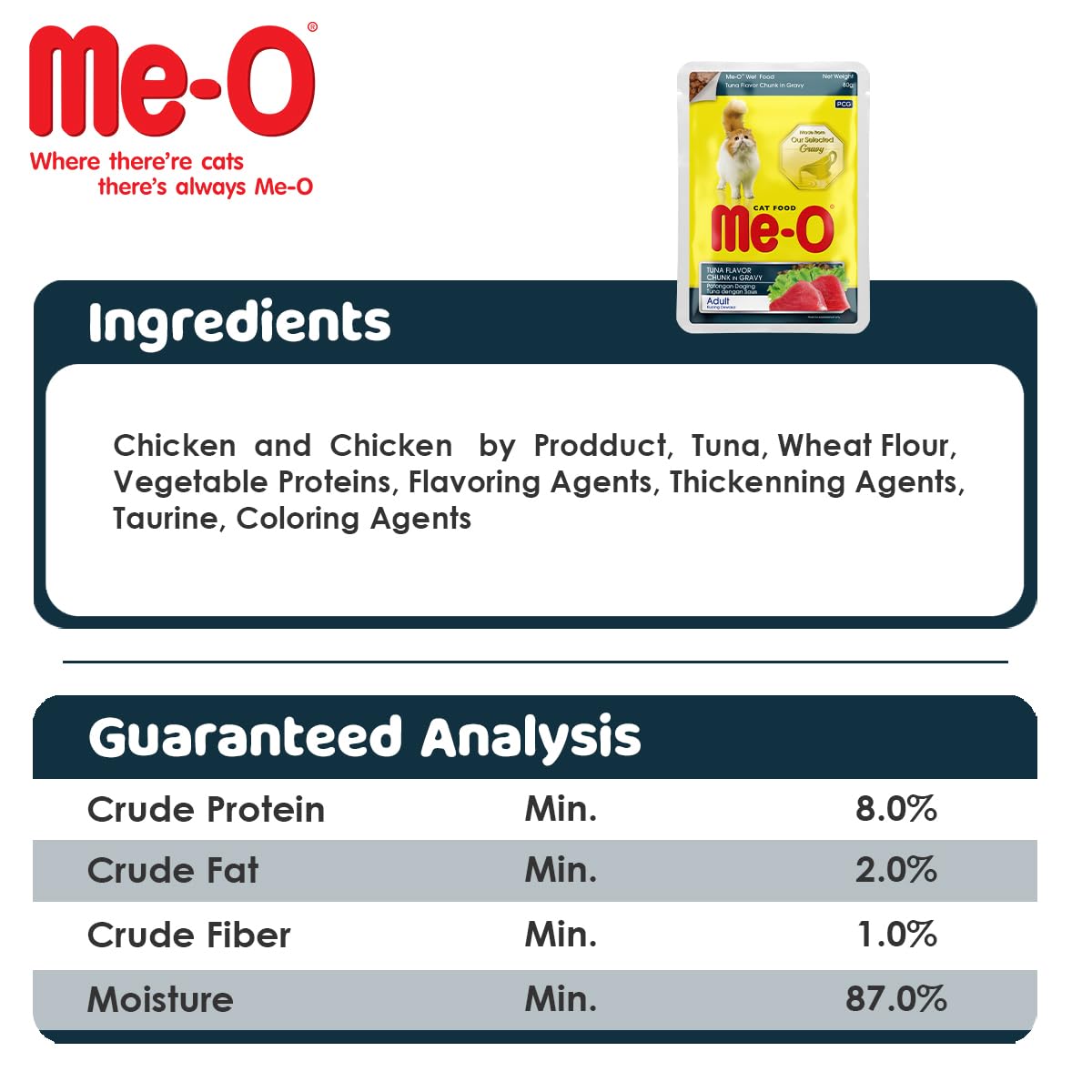 Me-O Pouch cat | 80g | Pack of 1 | Tuna Flavour Chunk in Gravy | Wet Food | Adul...