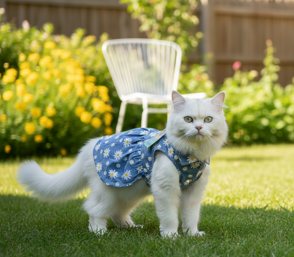 Petaholic Dress For Cats | Blue Floral Printed Dress | Medium-Size