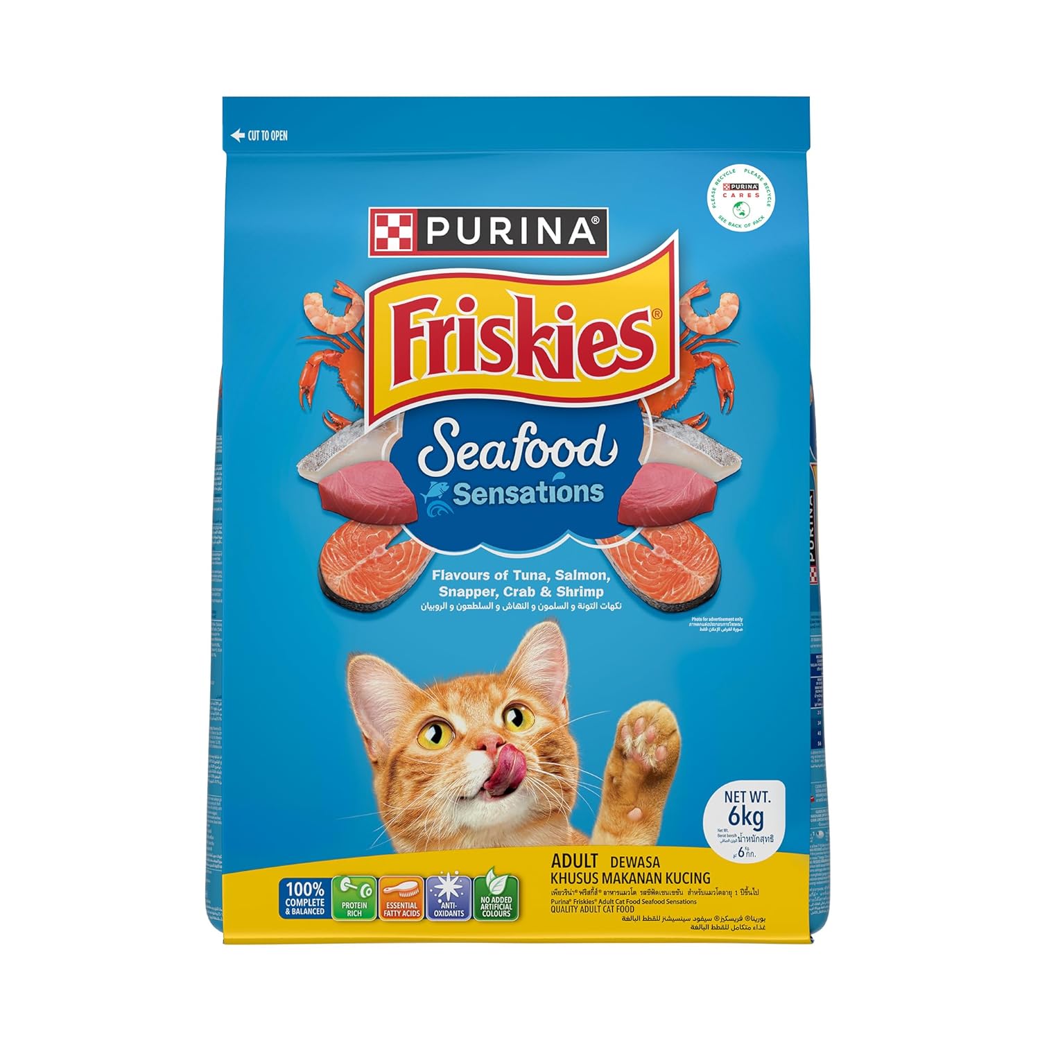 Purina Friskies Seafood Sensations Adult Dry Cat Food | 6kg | Contains Tuna, Salmon, Snapper, Crab & Shrimp Flavours