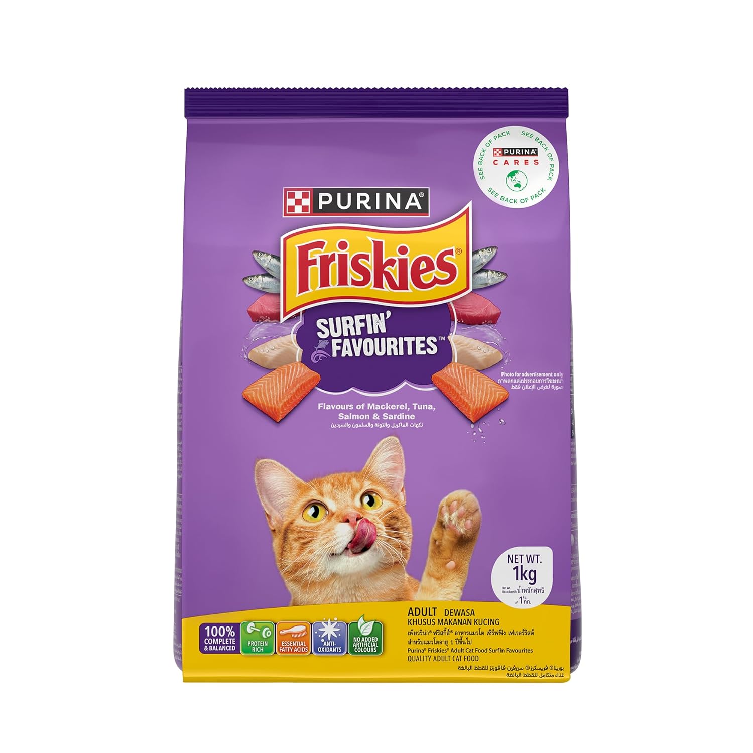 Purina Friskies Surfin’ Favourites Adult Dry Cat Food | 1kg | Contains Mackerel, Tuna, Salmon & Sardine Flavours