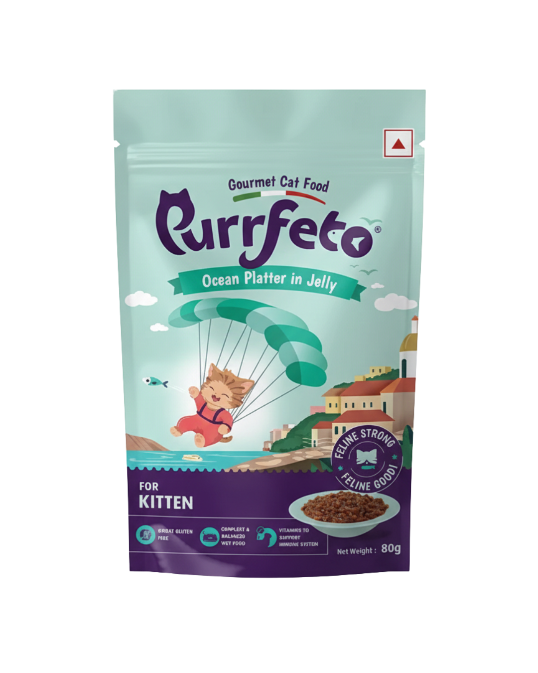 - Flavourful: Ocean Fish Platter in Jelly is a true delight for your kitten. It is packed with the flavours of ocean fish and has a jelly texture for easy chewing and digestion.