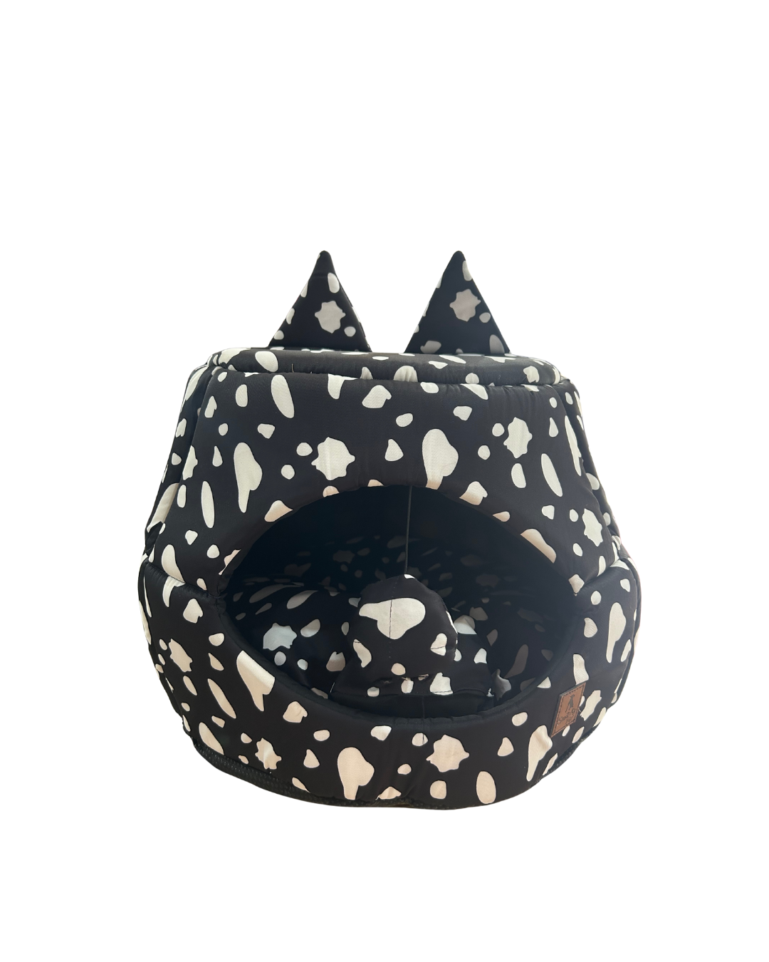 Smarty Pet Cat House for Kittens, Puppies, Cats and Baby Pets House Comfort Zone with Ball Toys & Removable Cushion | Black Printed Design